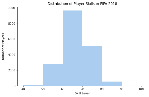 plt.title('Distribution of Player Skills in FIFA 2018')