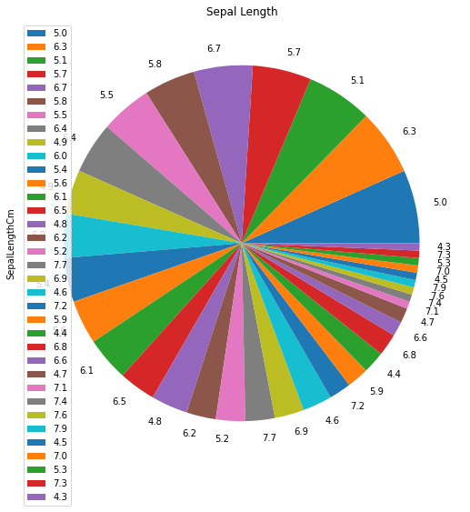 SepalLength.plot(kind='pie', title='Sepal Length', figsize=(9,9))