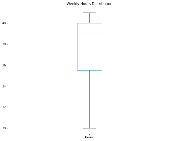 df['Hours'].plot(kind='box', title='Weekly Hours Distribution', figsize=(10,8))