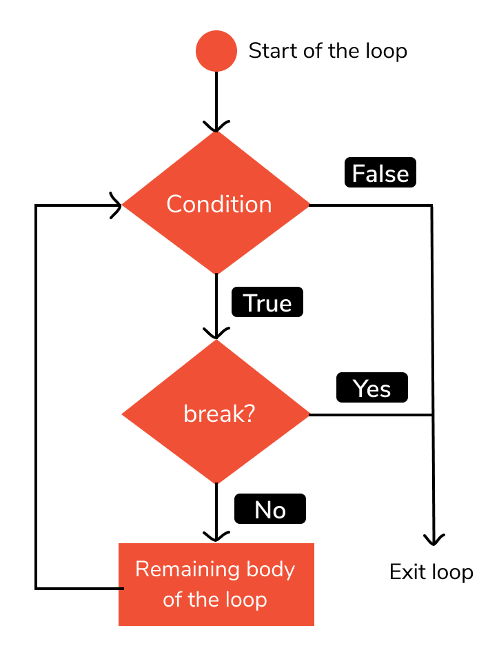 breakstatement is inside a nested loop (loop inside another loop), thebreakstatement will terminate the innermost loop.You’ll put the
