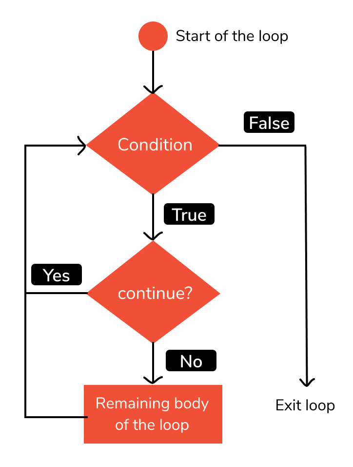 continuestatement inforloop andwhileloop is shown below.<img src=“images/con2.png” width=“700” alt=”continue1/>