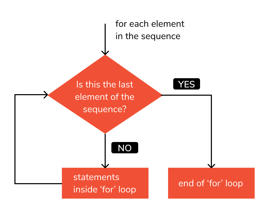 statementsin the body of the for loop are executed with the same value. The body of for loop is separated from the rest of the code using indentation.Finally, loop continues until we reach the last item in the