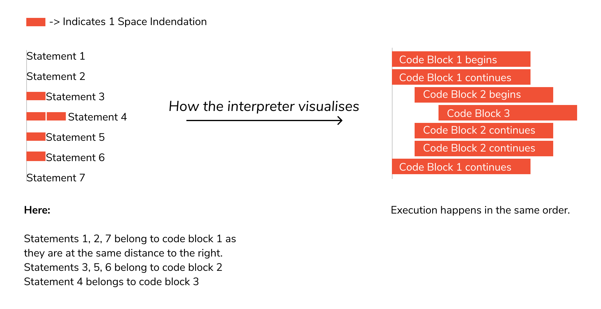 No spaces or tab characters allowed at the start of a statement: Indentation plays a special role in Python.