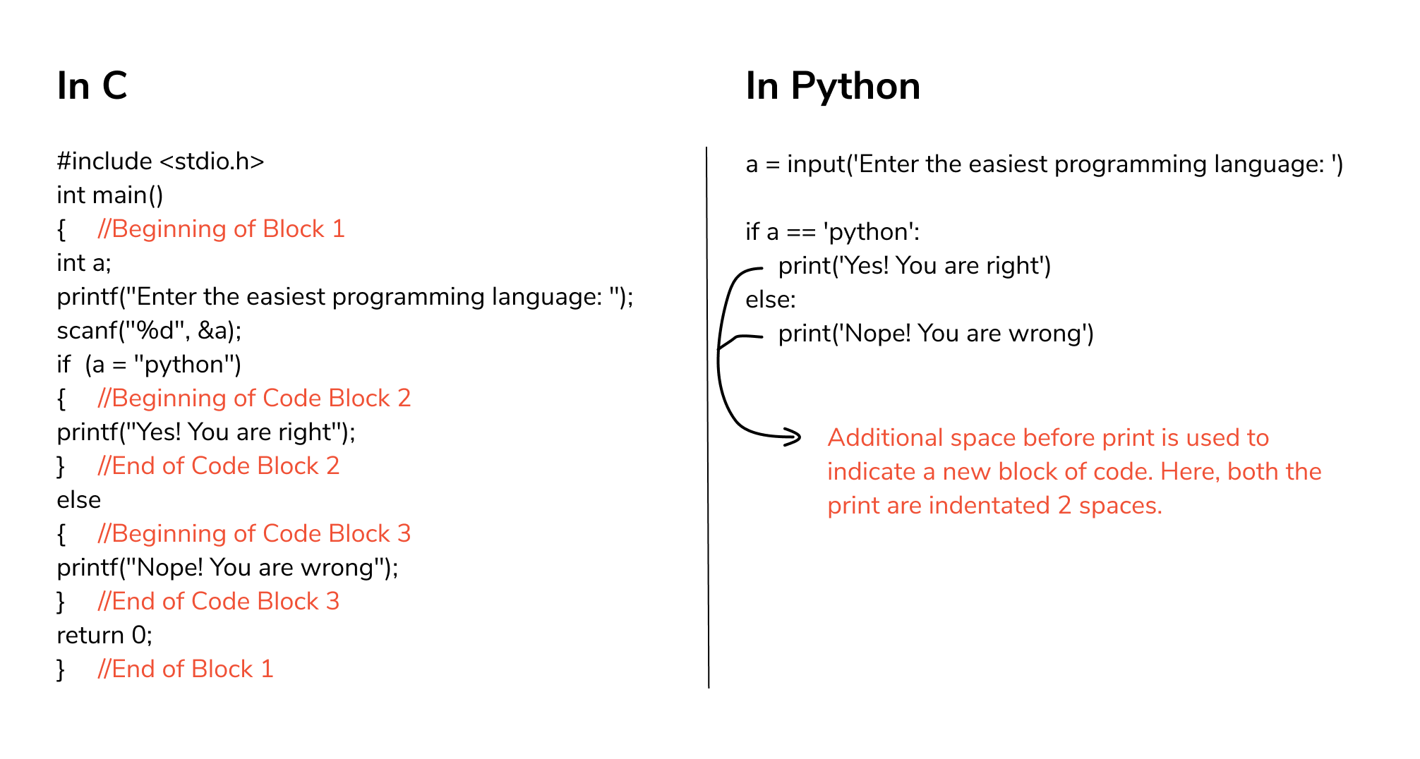 Most of the programming languages like C, C++, and Java use braces { } to define a block of code. Python, however, uses indentation.